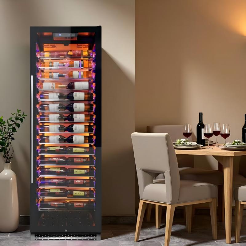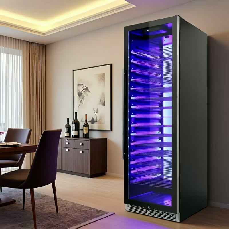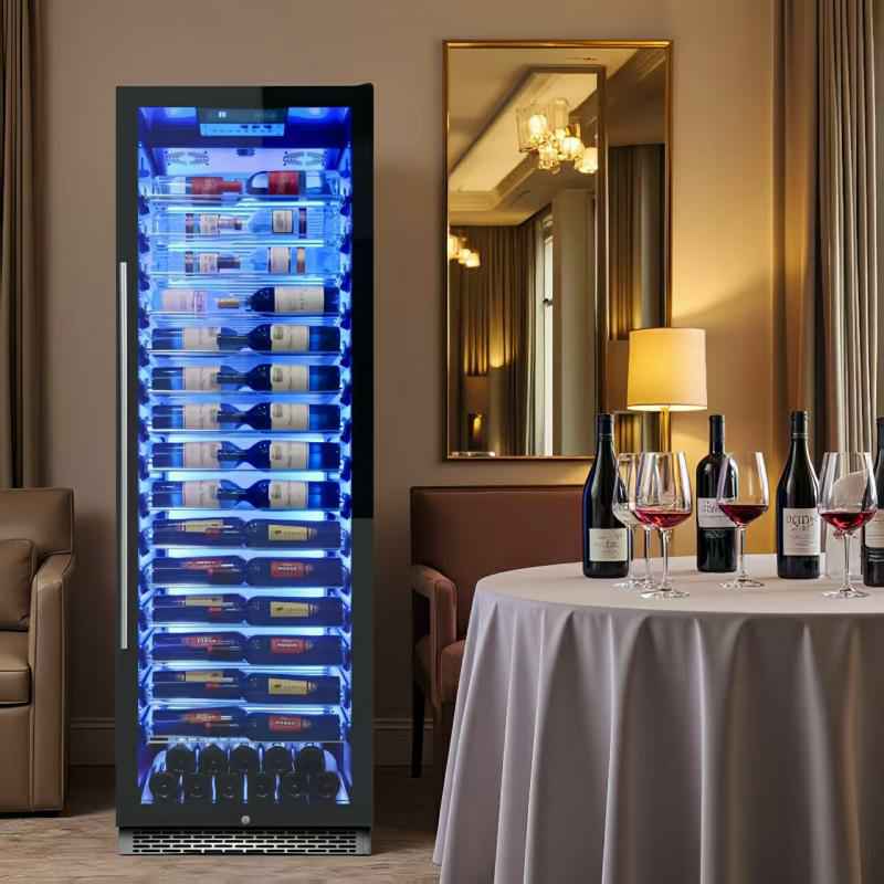Brenor 24" wide commercial 160-bottle wine display cabinet with LED back wall light